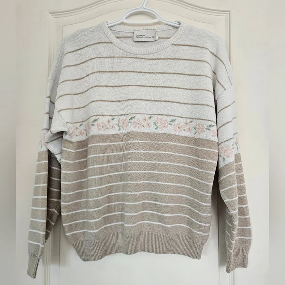 Neutral Floral Romantic Spring Sweater
