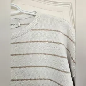 Pretty neutral sweater. size and material tags missing, but it feels like cotton or a cotton blend