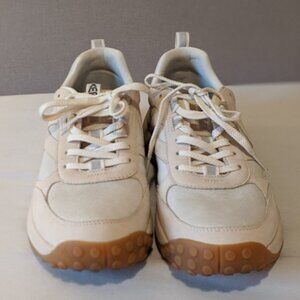 Fantastic leather and suede sneakers in a light neutral palette - great for summer travel.