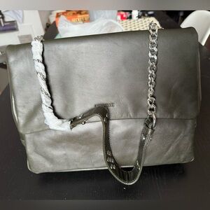 Leather bag, with chain and nail at the handle.