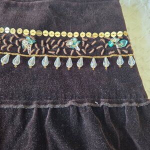 Nevada Boho vintage tiered chocolate brown velvet beaded skirt Size Medium