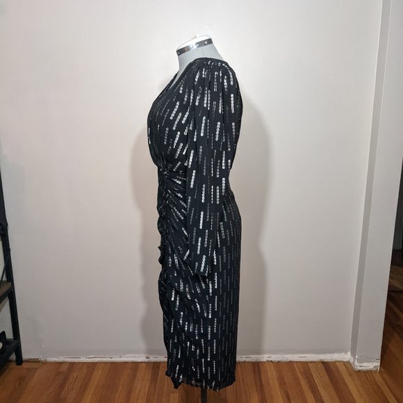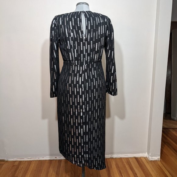 It's sparkly and retro and so cool! Never worn dress from Express. It's made for holiday parties with a little flair. Black, with silver sequins accent.