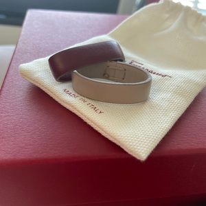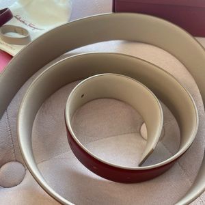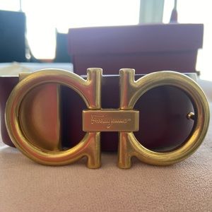 10/10 condition. Reversible- Dark red/Beige. Matte Gold buckle. Comes with box, dust bag, accessories and mini dust bag for belt loops. Downtown Toronto.
