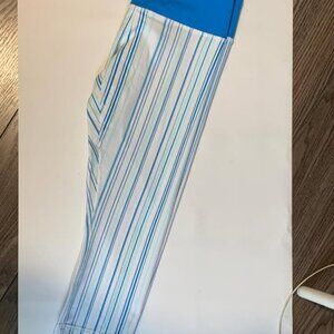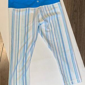 Never worn Lululemon Cropped Leggings – White & Blue Stripe – Size 8