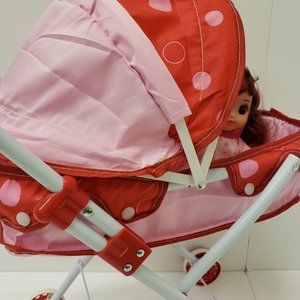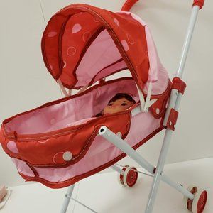 This colorful pram comes with an 10" doll, lots of fun for your little one to take for a walk or play at home.