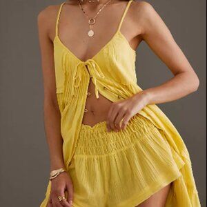 New 2-Pc Set; By Anthropologie Gauzy Cover-Up Mini Dress & Smocked Gauze Shorts