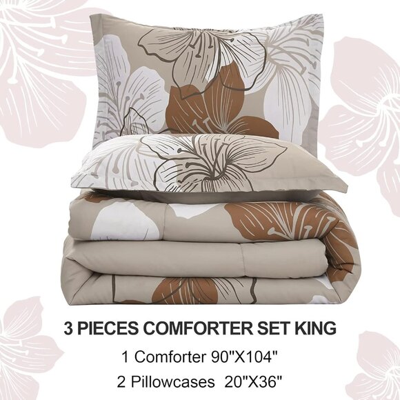 Brand New 3 PC Taupe Bohemian Floral Comforter Set • King Size 🚚 Buy 2 items from my closet, and save the second shipping fee ($13.50) Style Bohemian Floral Includes: 1 King Quilt (104" x 90") 2 Pillow Shams (36" x 20") Colour Taupe Material 100% Premium Polyester Microfiber • Hypoallergenic • Anti-bacterial • Fade, stain, shrink and wrinkle resistant • Machine washable Get on the list for updates to my closet! Like this listing to be notified of new arrivals, promotions, and more. When the price drops on this listing, you'll be notified!