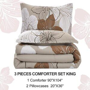 Brand New 3 PC Taupe Bohemian Floral Comforter Set • King Size