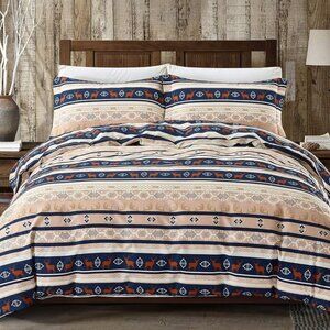 Brand New 3 Piece Brown & Navy Aztec/Deer Pattern Duvet Cover Set • DoubleQueen Size • Zipper Closure