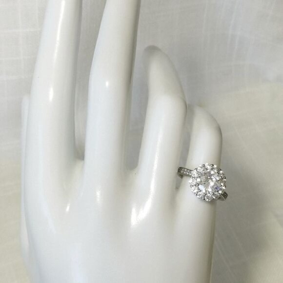 New 3ct CZ halo scallop flower ring size 6