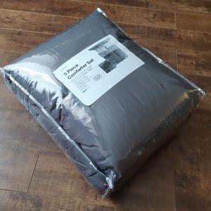 New 5 Piece Reversible Comforter Set • DOUBLE-QUEEN Size • Grey