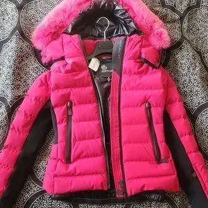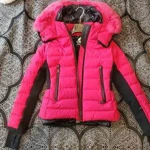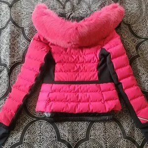 material: 86% polyamide, 14% elastane~material II: 52% polyester, 32% polyamide, 16% elastane~material III: 83% polyamide, 17% elastane~trim: 100% fox fur~filling: 100% polyester, 90% down, 10% feathers~lining: 100% polyamide, fully lined~care instructions: machine wash at 30 degrees~zipped pockets, internal pocket~two-way zipped front, snap-button fastening~detachable fur-trimmed hood~contains non-textile parts of animal origin~Runs small, please see Size & Fit tab