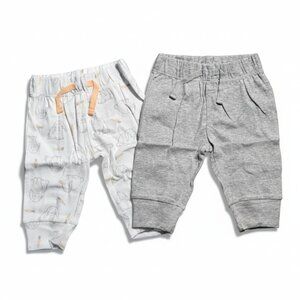 Pants 2: White with an all-over carrot/bunny print and orange drawstring detail.