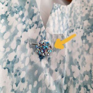 • New with tags. Please note two buttons missing a rhinestone. Please see photos, they are part of the description.