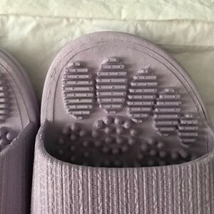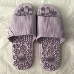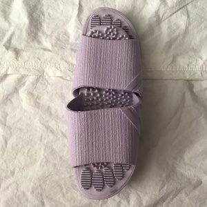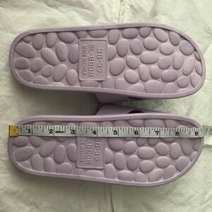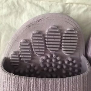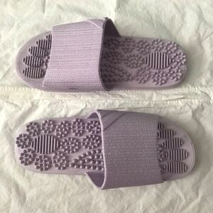 Comfortable light violet purple size 38/39 massage slippers great for using indoors or outdoors. Smaller fit so fits size US 7 or 7.5 very well.
