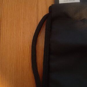 Nylon with front zippered pocket. 14x18 in. Burgundy and black. New. cardboard insert with brand attached.