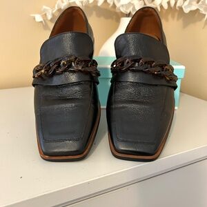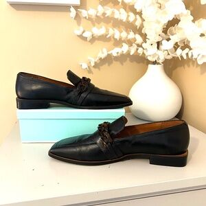 New! Angel Alarcon Black Leather Loafers with Tortoise Chain Detail Size 39/8.5
