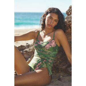 Stunning Anthropologie Hutch Zenna Floral Print One-Piece Swimsuit Ruched Belted Tie