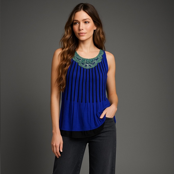 New beaded top from Anthropologie 100% rayon New tag is missing but still has extra beads attached
