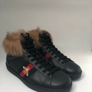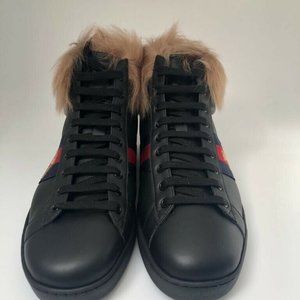 New Authentic Gucci Ace High-Top Sneaker With Fur