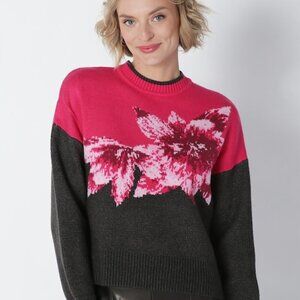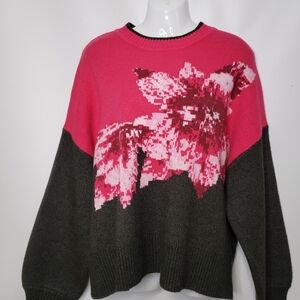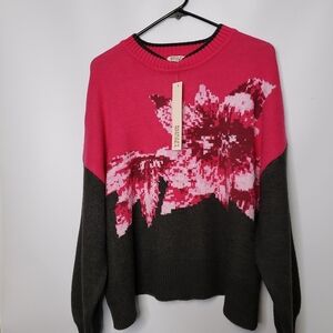 New Badgley Mischka Poinsettia Dark Floral Sweater Women's Plus Size 1X