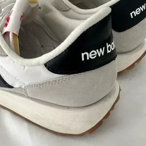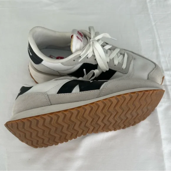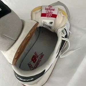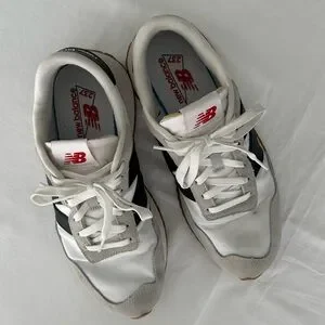Classic New Balance 237 sneakers in white and black, barely worn and in excellent condition. Retro-inspired design with a modern twist, featuring a lightweight upper, comfortable cushioning, and durable rubber sole. Perfect for everyday wear, casual outfits, or sneaker enthusiasts looking for a stylish, versatile pair. Very minimal scuffs.