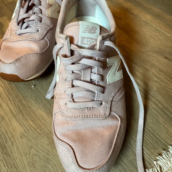 pink New Balance sneakers, size 8. Light wear on the shoes and small scuffs on the toes; please look at the photos. Very lightly worn.