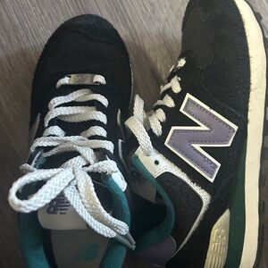 Sleek New Balance shoes in black and green. Offers a modern look with cushioned support.