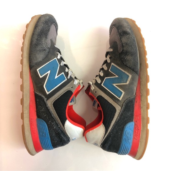 New Balance 574 Sneakers Gray Red & Blue. Unisex. US Women 8.5. US Men 7.