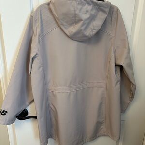 Stylish jacket with hood. Features front zipper and side pockets. Perfect for casual wear. My husband says it’s gray. I think it has a lilac/blush pink look to it. It’s gorgeous. Never worn.