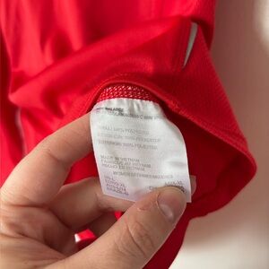 Fitted red athletic tee by New Balance, moisture-wicking performance fabric. Ptp: 20in | Length: 25in