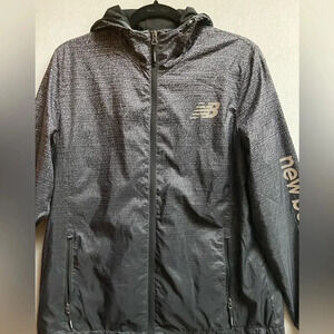 New Balance Water Resistant Fabric Hooded Wind Breaker Rain running Jacket Sz L