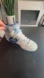 Stylish high-top sneakers with white and blue accents. Perfect for athletic activities or just casual wear .
