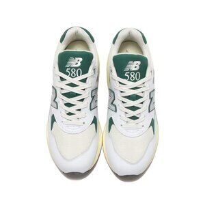 Stylish New Balance sneakers. White and green design. Comfortable fit.