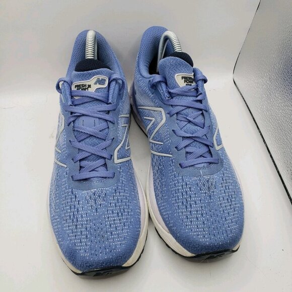 Stylish New Balance athletic shoes for women. Features a blue upper with white accents. Perfect for running and casual wear.