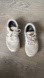 Gently used as I only wore a couple of times. There is some discoloration from a rainy day but the shoes have been cleaned since. The soles are in excellent condition with no visible wear. Selling because I have wide feet postpartum!