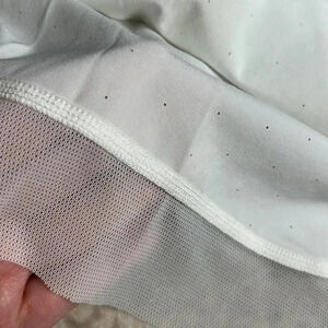 New Balance white skort with lace hem , pin holes in skirt and cut out in band