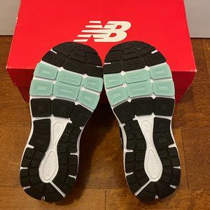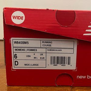 Brand new, never worn women's New Balance 840v5 running shoe, size 6D wide. Black with green accents. Fits orthotics.