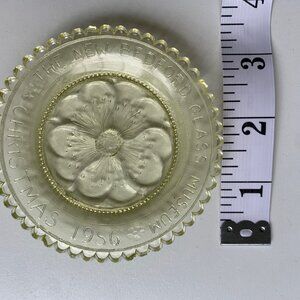 Vintage commemorative pressed glass plate from the New Bedford Glass Museum, dated Christmas 1986.