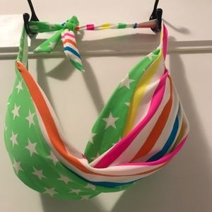 New, never used bikini from Italy. Still has the sanitary liner in the bottoms. European size 48 (fits like approximately size 8 to 10 Canadian with D cup top). Beautiful colours for summer .