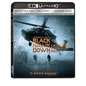 # Black Hawk Down - 4K Ultra HD / Blu-ray + Digital - BRAND NEW & SEALED ## Ridley Scott's Intense War Epic in Stunning 4K! **Condition:** Brand New, Factory Sealed **Format:** 4K Ultra HD / Blu-ray + Digital Code --- ### What You Get: Own **Black Hawk Down** in spectacular 4K Ultra HD! Experience Ridley Scott's harrowing war film with unprecedented clarity. This edition includes 4K UHD, Blu-ray, AND Digital copy for maximum viewing flexibility! ### Film Highlights: - Directed by Ridley Scott (Gladiator, Alien, Blade Runner) - Winner of 2 Academy Awards (Film Editing, Sound) - Based on Mark Bowden's acclaimed book about the 1993 Battle of Mogadishu - All-star ensemble cast: Josh Hartnett, Ewan McGregor, Tom Sizemore, Eric Bana - Intense, realistic combat sequences - One of the greatest modern war films - 19 hours of combat condensed into visceral cinema - Honors the courage of soldiers in impossible circumstances ### Technical Specs: - **Video:** 4K Ultra HD (2160p) with HDR10/Dolby Vision - **Audio:** Dolby Atmos - immersive battlefield audio - **Includes:** 4K UHD disc + Blu-ray disc + Digital code - **Bonus Features:** Behind-the-scenes documentaries, real soldier interviews, director commentary - Experience the intensity of combat in stunning 4K detail ### Why This Edition is Powerful: - Ridley Scott's visceral direction in 4K clarity - HDR intensifies the harsh desert sunlight and combat sequences