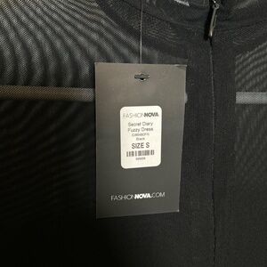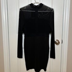 Mesh on top back and arms, feathers cover bust, has some stretch to it