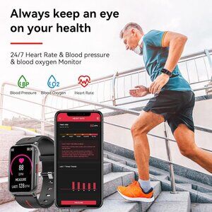 • Smart Voice Control, Phone Receive, Fitness Tracker, 8 Sport Modes, 24/7 Heart Rate Monitor, Blood Pressure Monitor, Blood Oxygen Monitor, Sleep Monitor, Activity Tracker, Notifications, Sleep Monitor, Sedentary Reminder, Time Display, Music/Camera Control, Step Counter, Alarm Clock, Pedometer Calories Distance, Weather Forecast, Stopwatch, Waterproof, Find Phone, Calculator, Menu Style, Brightness Adjustment and more...