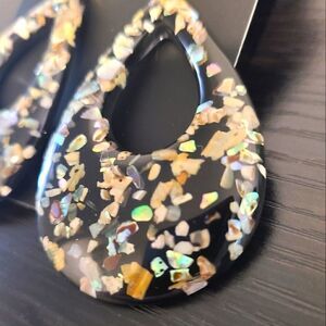 New Black Teardrop Crushed Shell in Black Acrylic Dangle Earrings