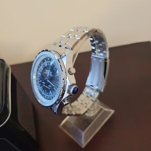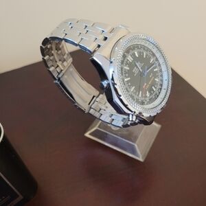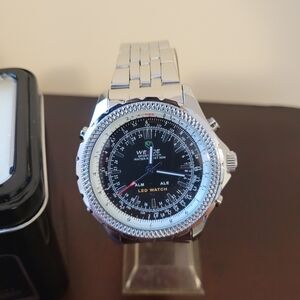 Stylish WEIDE watch with a silver band and black dial. Features LED display.