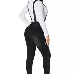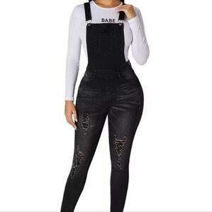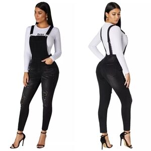 Black Denim Distressed Jumpsuit Overalls – Size Small