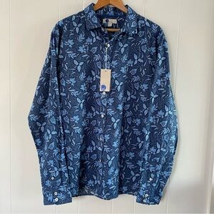 New Boden Cutaway Collar Linen Shirt Button Down Blue Ensign Tropical Floral