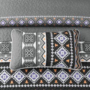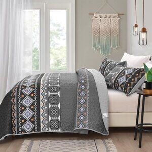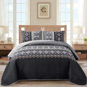 New Boho Aztec Black & Grey 3 PC Bedding 100% Polyester Quilt Set • KING Size