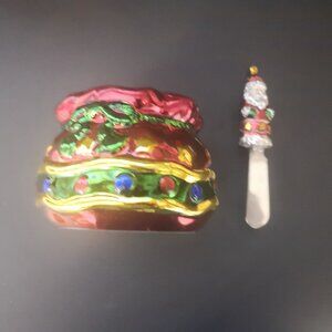 New Boston Warehouse Heirloom Ceramic Dip Bowl & Spreader 14oz Red, Green & Gold