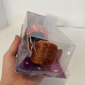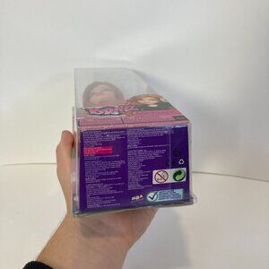 Doll is new in box. Box has a dent/compression on the top right. Plastic has scuffs/marks. Back cardboard is in good condition.